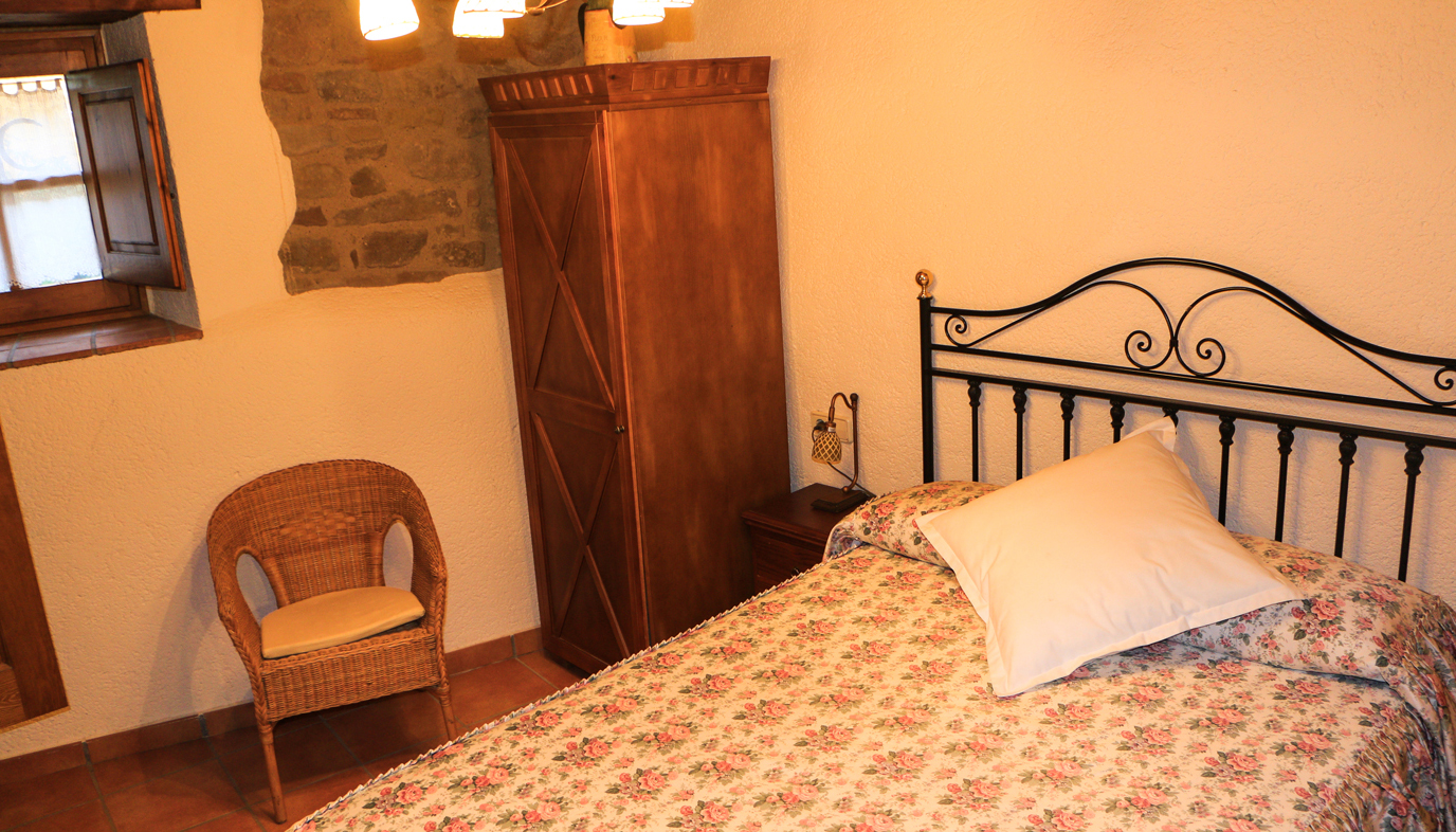 Habitació doble amb llit de matrimoni, equipada amb bany propi i plat de dutxa. Es troba a la planta baixa, per tant, és ideal per a persones grans o per a persones que volen mantenir certa independència de la resta d’estances. Disposa també de wifi gratuït.